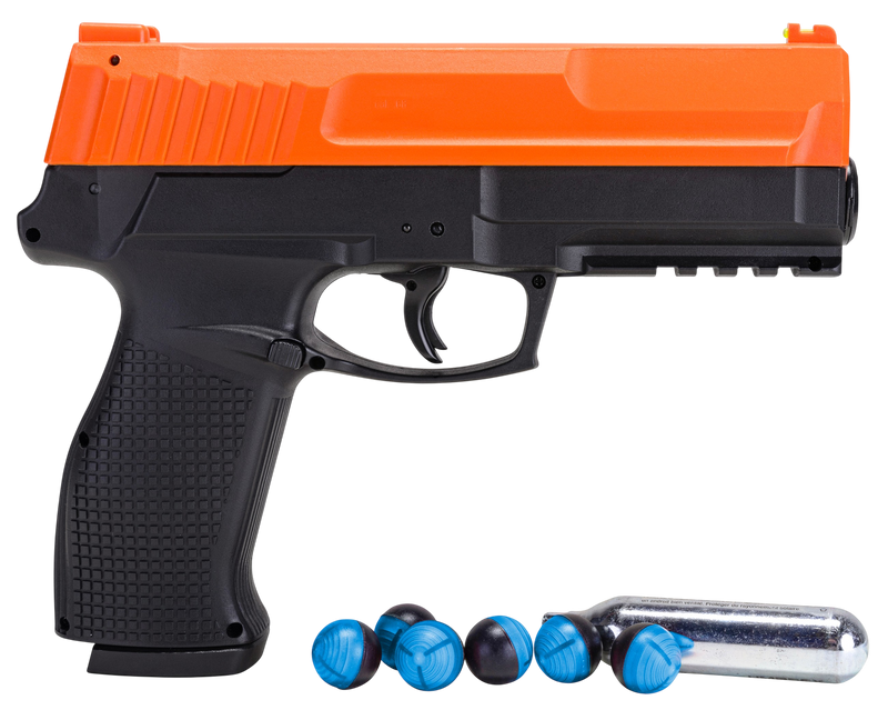 The Umarex P2P Secure Impact Defense Kit is a 68 caliber CO2-powered semi-automatic air pistol with a 4.80" barrel and 6-round capacity. It features fixed fiber optic front and rear sights for improved targeting and weighs 1.40 lbs. This compact defensive air pistol measures 11.4" in overall length.