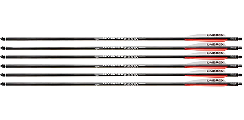Carbon fiber construction arrows designed specifically for the Umarex AirJavelin pneumatic archery system, capable of handling high-pressure propulsion at over 300 fps. Each arrow measures 14.7" in length with a 50-grain field tip installed and can accept standard and mechanical broadheads for small game hunting. This 6-pack includes arrows with 176-grain total weight.