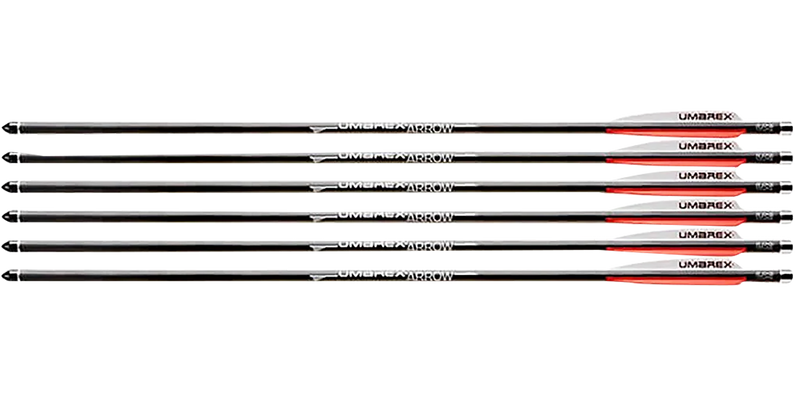 These carbon-fiber arrows are designed exclusively for the Umarex Air Saber air archery gun and feature Straight Flight Technology to withstand the extreme pressure of the air-powered platform. Each arrow weighs 276 grains with the shaft, and 376 grains when fitted with the included field tip. Sold as a 6-pack.