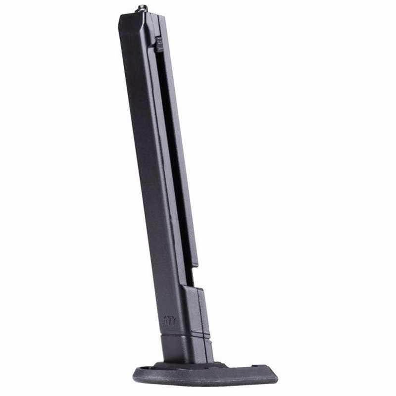 Replacement magazine for the Walther PDP .177 caliber BB pistol with 18-round steel BB capacity. Features a floor plate designed to match the PDP's grip profile for seamless integration and reliable feeding.
