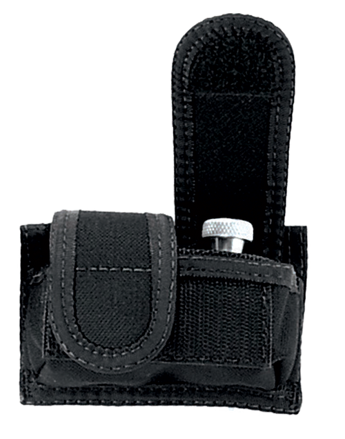 A durable water-resistant Cordura nylon belt pouch with single compartment designed to hold firearm accessories and gear. Measures 7" wide x 4.75" high x 1.5" deep, expanding to 3" depth for additional storage capacity. Features belt loop mount for universal fit and secure attachment.