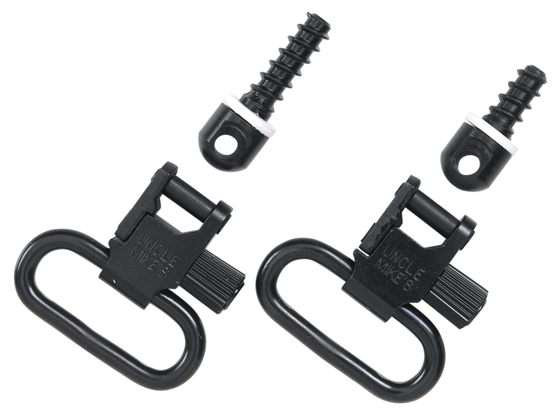 Quick detach sling swivel designed for rifles with wood forends, featuring a 1.25" loop and blued steel construction. Includes wood screws for secure attachment. Sold as a 2-pack with swivels and mounting hardware.