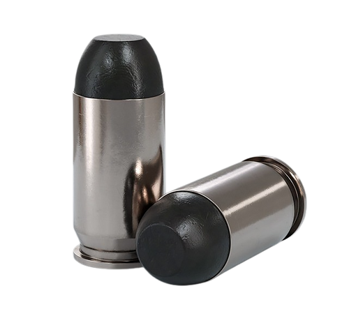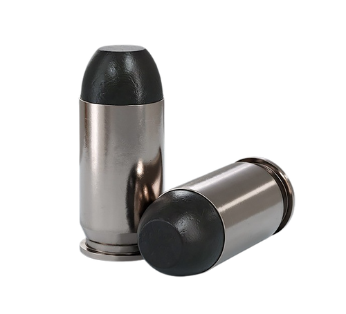 .380 ACP ammunition loaded with 100-grain hard cast flat nose bullets at 975 fps muzzle velocity. Features nickel-plated brass cases, black cherry coating, and is suitable for medium game hunting. New production, non-corrosive, boxer-primed, and reloadable with 20 rounds per box.