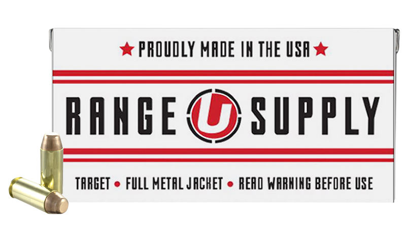 Underwood Range Supply 10mm Auto ammunition loaded with 180-grain full metal jacket flat nose bullets. This new production ammunition features non-corrosive boxer-primed reloadable brass cases and delivers a muzzle velocity of 1250 feet per second with 625 foot-pounds of muzzle energy. Suitable for target practice and hunting applications.