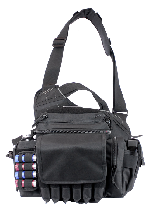 The US PeaceKeeper Rapid Deployment Pack is a compact shoulder sling bag constructed from 600D polyester with water-resistant properties. Measuring 12" x 10" x 3", it is designed to hold and organize shooting equipment and accessories. Features a durable zipper closure and comes in OD Green/Black coloring.