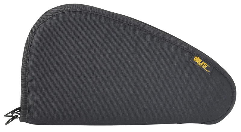 This US PeaceKeeper pistol case is a soft-sided protective case designed to hold 1 handgun. Constructed from 600 Denier polyester with padded interior, it features a lockable design with D-ring hardware for secure transport and storage. Dimensions are 9" x 6" x 3".