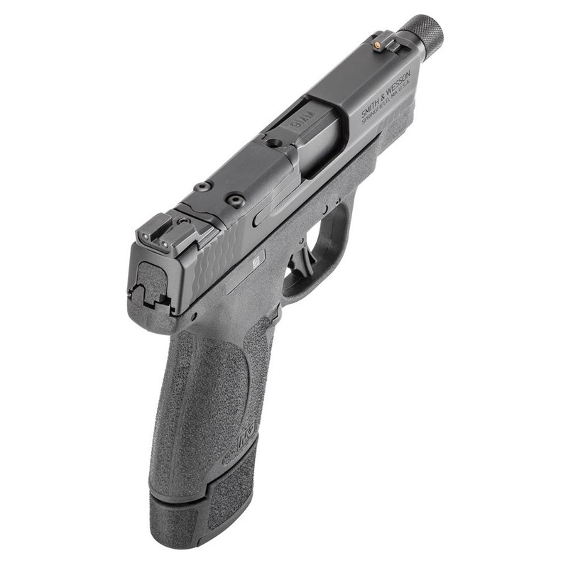 Semi-automatic handgun chambered in 9mm Luger with a 3.7" threaded barrel and 10-round capacity. Features night sights, optic-ready slide (RMS-c), flat-face trigger for consistent placement, and enhanced grip texture. Used condition.