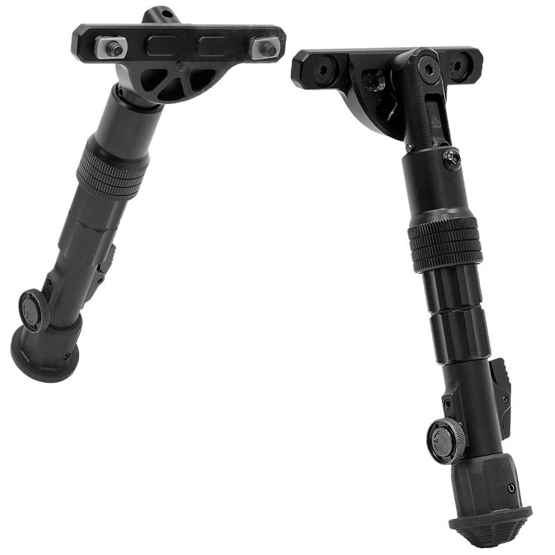 The Leapers UTG Recon Flex Bipod is a black anodized aluminum bipod designed for M-LOK compatible firearms with an adjustable center height range of 5.7" to 8". Weighing 10.80 oz and constructed from lightweight aluminum, it provides stable shooting support for tactical rifles and precision shooting applications.