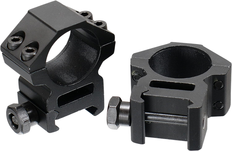 UTG Accushot scope rings designed for 1" diameter scope tubes in medium height configuration. Features matte black anodized aluminum construction and are compatible with both Weaver and Picatinny rail systems. Sold as a pair.