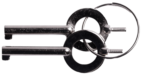 NIJ-certified steel handcuffs in silver finish with professional-grade construction. Includes 2 keys for operation. Dimensions: 4.9" length x 3.7" width x 1.0" height.