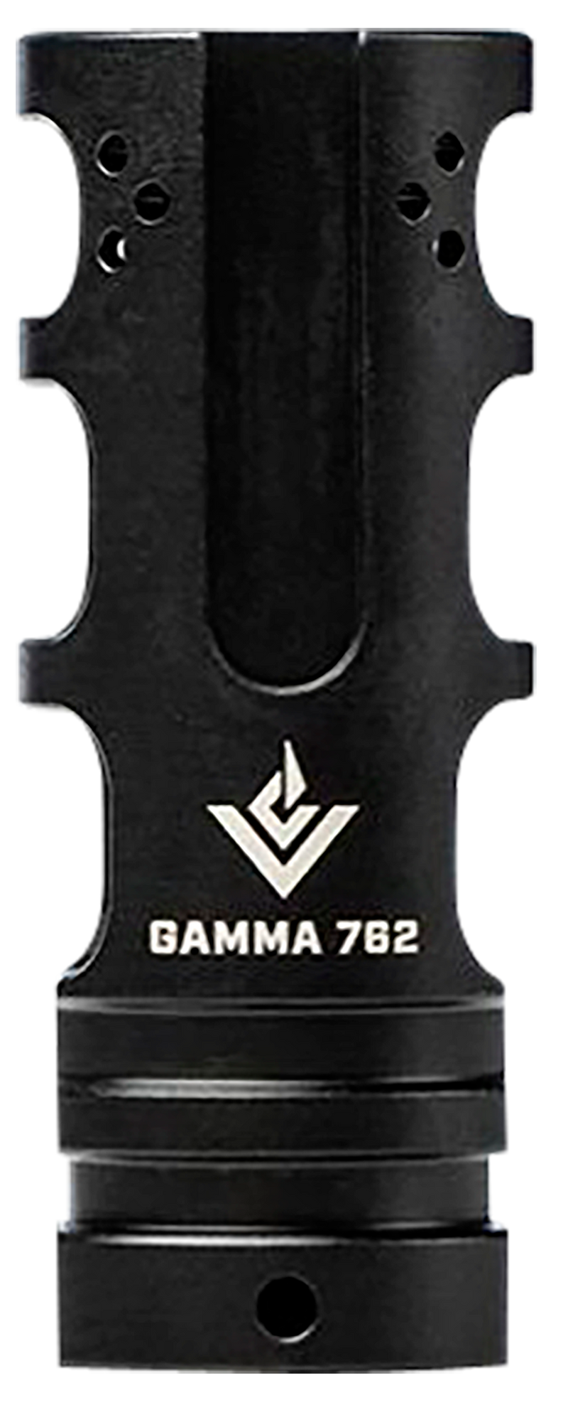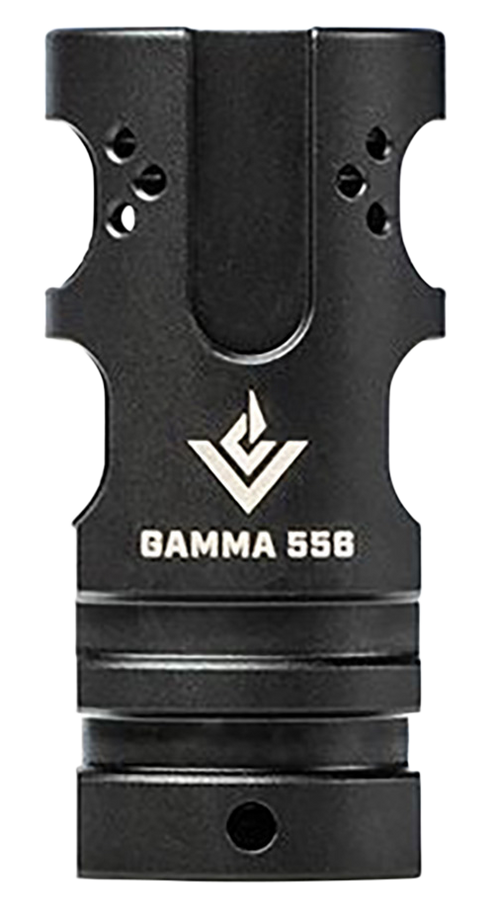 The Gamma 762 is a muzzle brake and compensator hybrid designed for 7.62mm/.308 Winchester rifles with 5/8x24 thread pitch. Machined from 17-4 stainless steel with black nitride finish, it uses CFD and CAE engineering to virtually eliminate recoil and muzzle movement. This high-performance device measures 5.1" in length and threads directly onto compatible rifle barrels.