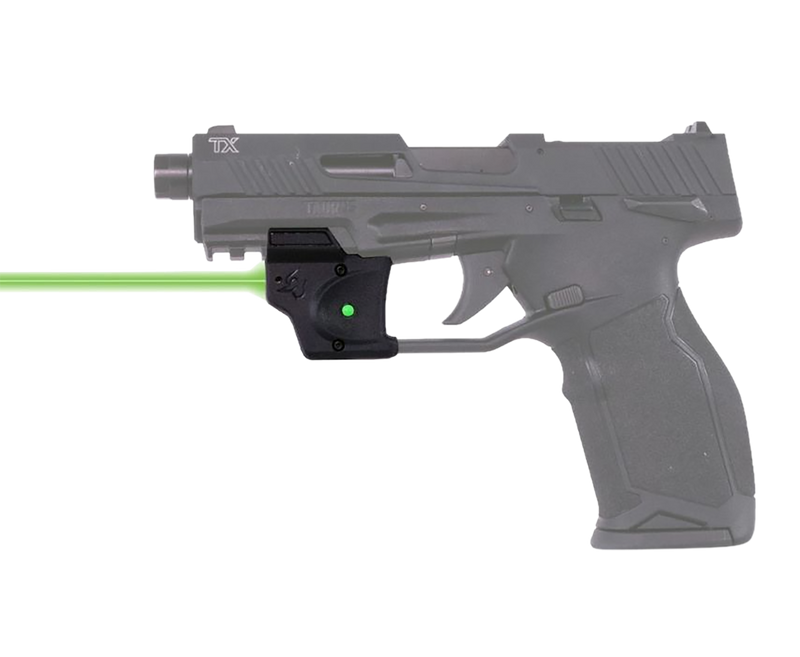 This trigger guard-mounted green laser sight is designed specifically for the Taurus TX22 pistol and delivers rapid target acquisition in both daylight and low-light conditions. It features an ambidextrous on/off button with a 5-minute auto-shutoff, 100-yard effective range during day and 1-2 mile range at night, and runs on a CR1/3N battery with approximately 6+ hours of continuous runtime. The polymer construction is lightweight and built for everyday concealed carry use.