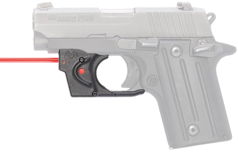 This trigger guard-mounted red laser sight is designed specifically for Sig Sauer P238/P938 pistols and offers rapid target acquisition for concealed carry use. It features a 25-yard effective range in daylight and up to 1 mile at night, with an ambidextrous on/off button and 6+ hours of battery runtime on two CR1/3N batteries.