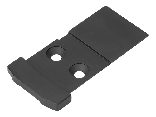 This is a mounting adapter plate designed specifically for the Viridian RFX45 closed emitter green dot reflex sight to fit Glock MOS (Modular Optics System) pistols. Manufactured from 6061-T6 aluminum with black anodized finish, it provides a secure interface between the reflex sight and compatible Glock platforms.