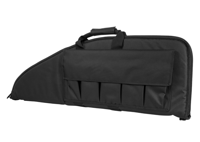 This NcSTAR VISM rifle case measures 36" x 13" and features heavy-duty double zippers with an ID holder for secure storage and transport. The case includes foam padding for protection, a carry handle, and shoulder strap for convenient carrying of rifles and accessories.