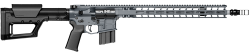 Semi-auto rifle chambered in 6mm ARC with an 18" threaded barrel and 30+1 round capacity. Features a billet aluminum receiver, 15" M-LOK handguard, 6-position collapsible A2 stock, and 3.5 lb. trigger kit. Weighs 10 lbs and measures 32-35" overall with black cerakote finish and 1/2x28 thread pattern.
