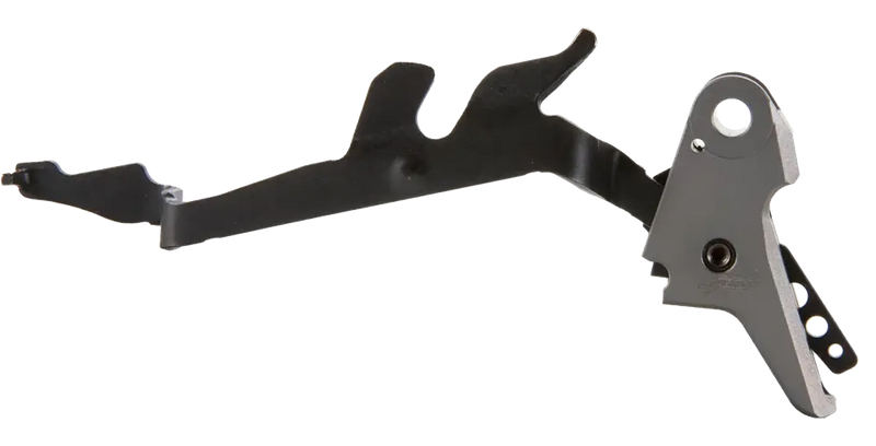 This is a striker-fired pistol trigger assembly kit featuring a flat-faced trigger bar and complete fire control assembly. The upgrade reduces trigger weight take-up and reset distance, providing smoother and faster firing mechanics for enhanced performance. Available in grey or black finish to customize your firearm's appearance.