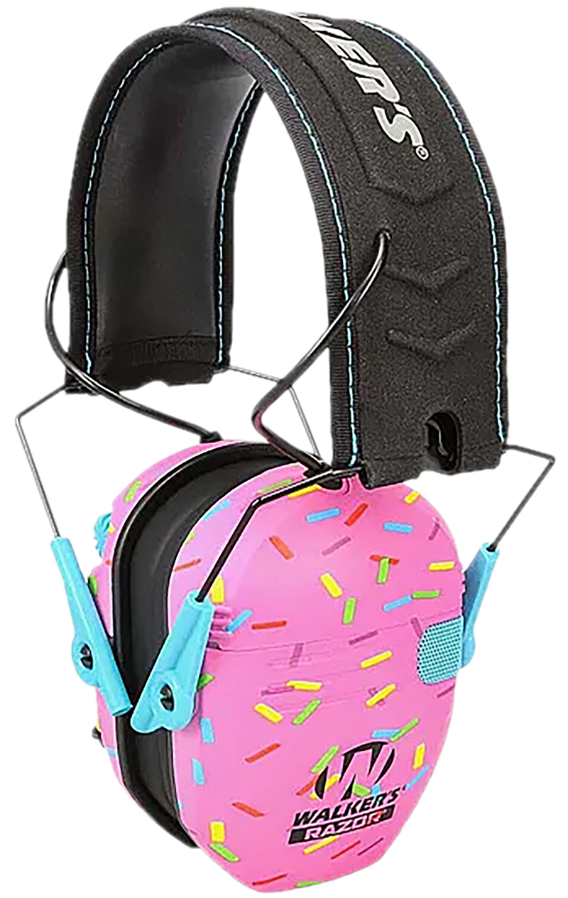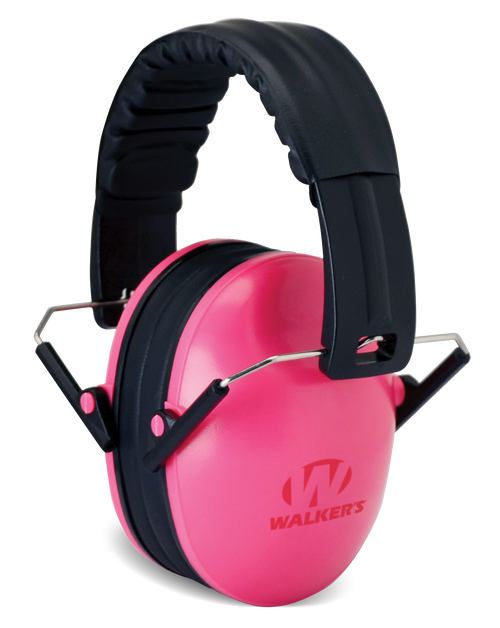 Walker's passive youth earmuffs feature a 23 dB noise reduction rating (NRR) and folding over-the-head design for portability and storage. The small earmuffs are designed specifically for younger shooters and hunters, with pink sprinkle color finish. These earmuffs provide reliable hearing protection without batteries or electronics.