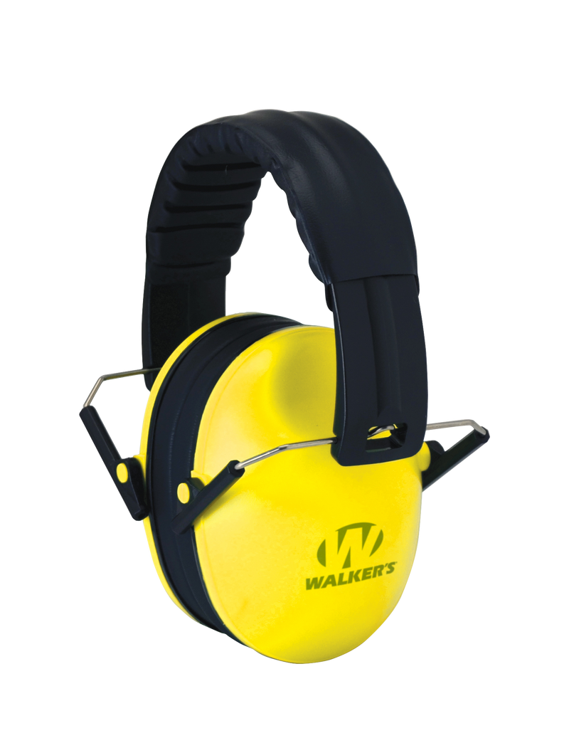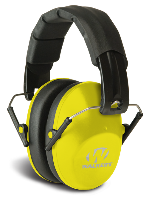 Walker's Baby & Kids Folding Muff is a compact earmuff designed specifically for young shooters, offering 23 dB noise reduction rating (NRR). The lightweight polymer construction folds for easy portability and storage. Features an over-the-head design with yellow and black color scheme suitable for extended shooting sessions.