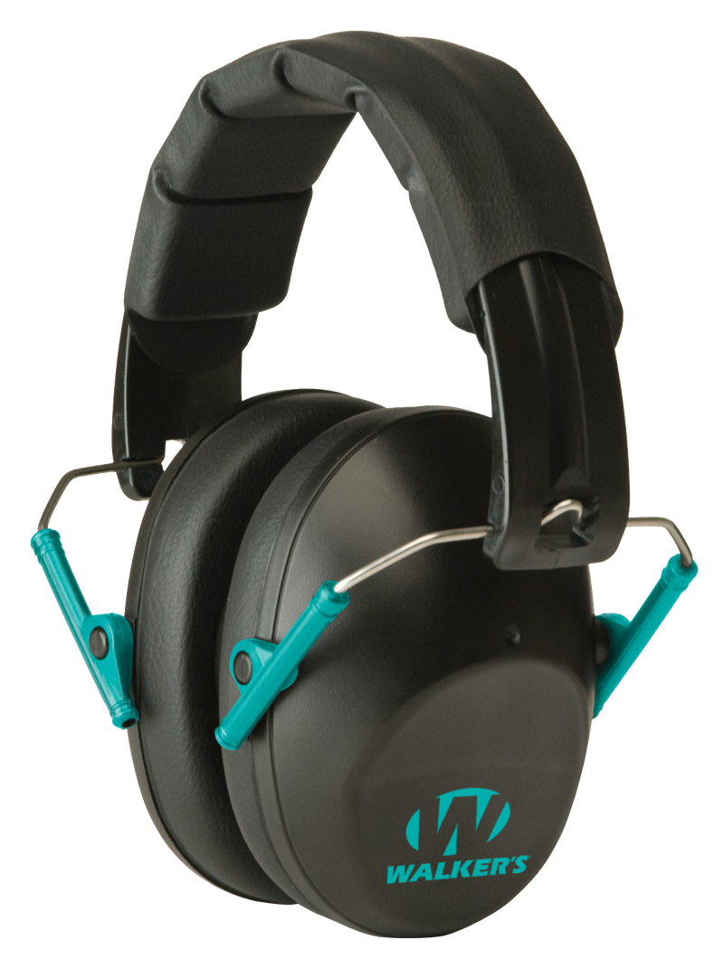 Walker's Pro Low Profile Passive Folding Earmuff, Black/Teal - GWPFPM1BKTL