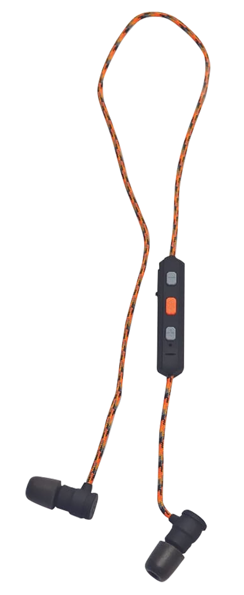 Walker's behind-the-neck hearing enhancer features a flexible neckband design with 30 dB noise reduction rating for shooting and hunting use. The rechargeable ear buds amplify ambient sound while protecting against loud impulse noise. Constructed with durable plastic and rubber materials for comfortable all-day wear.