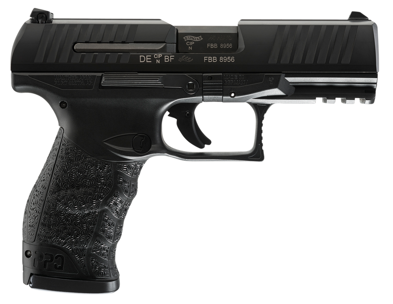 The Walther PPQ M2 is a striker-fired semi-auto pistol chambered in 45 ACP with a 4.25" barrel and 12+1 capacity. Features include a matte black Tenifer finish slide, polymer frame with Picatinny rail, adjustable 3-dot low-profile sights, and three automatic safeties. Weighs 28 oz and designed for personal protection and sport shooting.