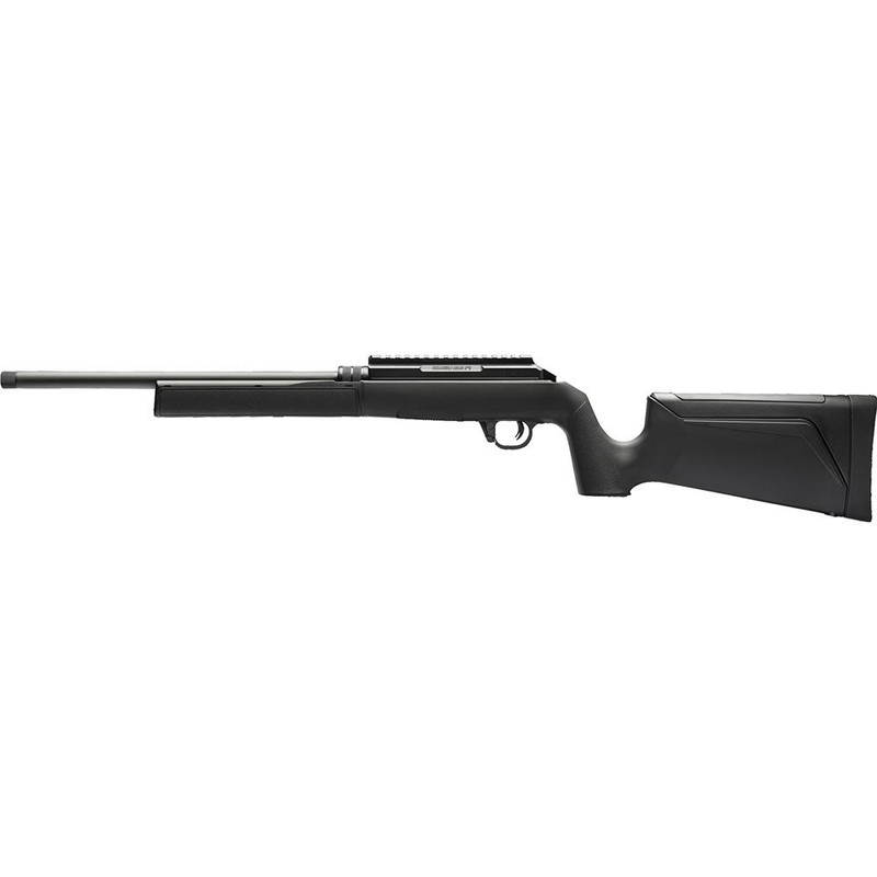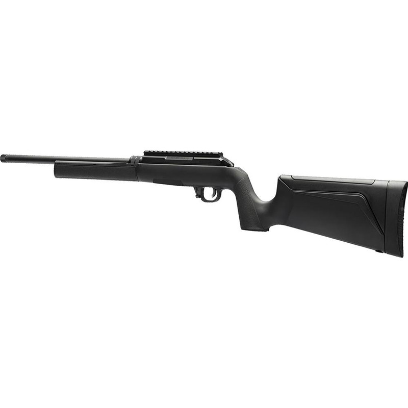 Semi-auto rifle chambered in .22 LR with a 16.1" threaded barrel and 10-round magazine capacity. Features a synthetic stock, anodized finish, and Picatinny rail for optic mounting. Includes magazine adapters for .22 WMR compatibility.