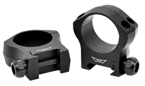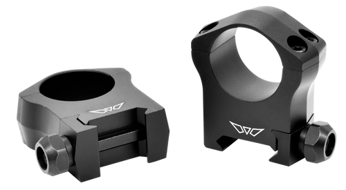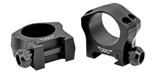 These are 2-piece Picatinny-style scope rings in 1" tube diameter, medium height, with a matte black finish. CNC machined from 7075 T6 aluminum for lightweight durability, they feature mil-spec hardcoat anodized finish and stainless steel hardware for corrosion resistance, compatible with both Picatinny and Weaver-style mounts.
