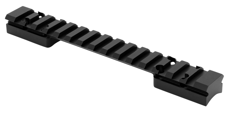 This is a Picatinny/Weaver/NATO-STANAG compatible tactical rail base machined from 7075-T6 aluminum with mil-spec hardcoat anodized finish. Designed specifically for Browning X-Bolt long action rifles, it features black zinc coated hardware and self-centering tapered T-15 torx screws. The rail measures 8.6 inches in length and 0.7 inches in height, providing a solid mounting platform for tactical optics and accessories.