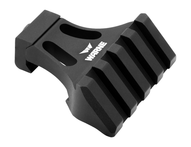 The Warne A645TW is a machined aluminum side mount adapter designed for flat-top MSRs and tactical firearms. It provides a 45-degree offset accessory platform that attaches to Picatinny-style rails, allowing mounting of flashlights, lasers, slings, or backup sights without obstructing your primary sight line. The adapter features four Mil-Spec 1913 cross slots and weighs only 1 ounce.
