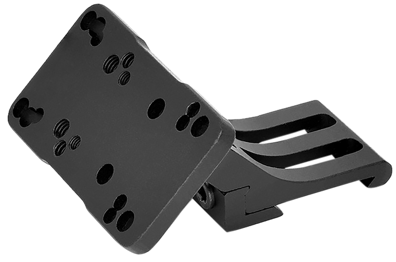 This 45-degree offset reflex mount is designed for right-handed shooters and accommodates popular red dot optics including Doctor, Sig Romeo3, Vortex Viper, and Holosun models. The black anodized aluminum construction features a Picatinny rail interface that maximizes space on the rifle's top rail while positioning the optic for fast target acquisition.