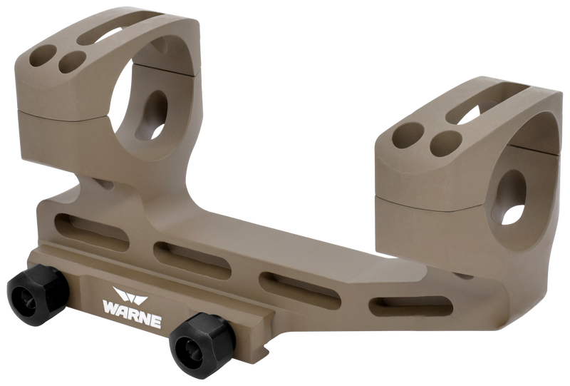 The Warne X-Skel is a cantilever-style scope mount/ring combo with a 1.9" super high height, designed for shooters using night vision, gas masks, or other accessories. Constructed from 6061 T6 aluminum with steel threaded inserts for a lightweight yet rigid foundation. The 34mm tube diameter provides compatibility with modern optics while maintaining a heads-up shooting position.