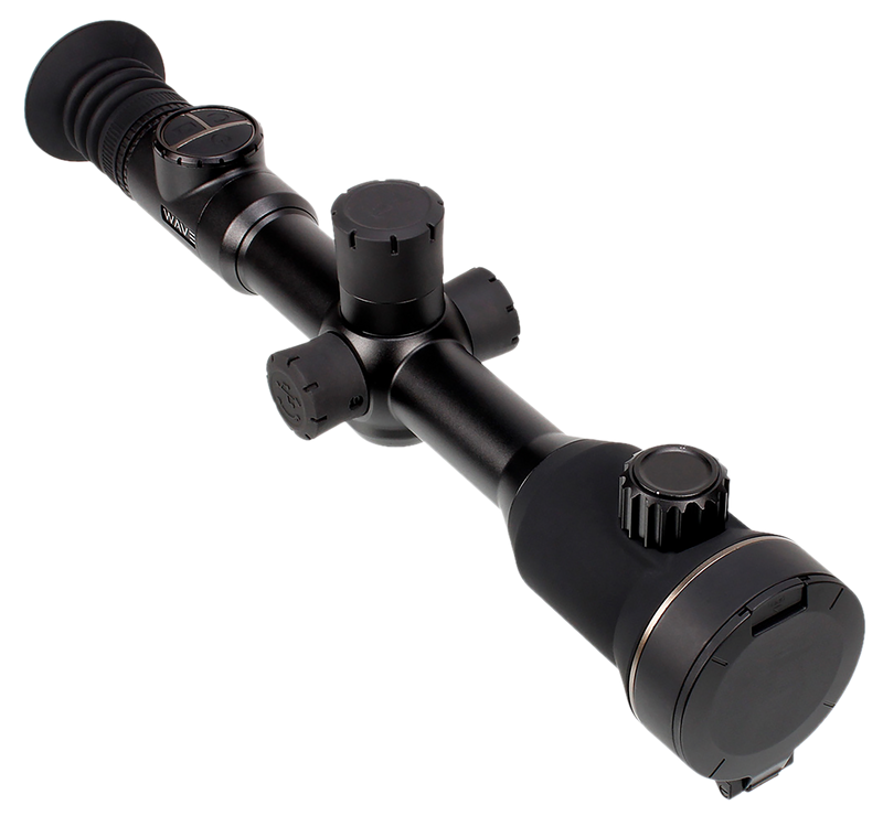 The Wave Atris 650 LRF is a 3x magnification thermal monocular with a 50mm objective lens and 640x512 resolution at 12 microns, delivering a 470 ft field of view at 1000 yards. It features an 18650 Li-ion rechargeable battery providing 7.5 hours of runtime. The integrated laser rangefinder and thermal imaging make it ideal for long-range detection and identification in low-light conditions.
