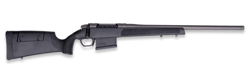 The Weatherby 307 Range SF is a bolt-action rifle chambered in 7mm Backcountry with a 20" threaded heavy barrel and Tungsten Cerakote finish. It features a drilled and tapped steel receiver, adjustable cheek piece and length of pull, synthetic black stock, TriggerTech trigger, and Accubrake muzzle device. The rifle weighs 7.9 lbs and holds 5+1 rounds, making it suitable for precision shooting and backcountry applications.