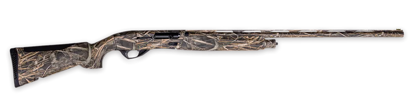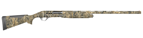 Semi-automatic 12 gauge waterfowl shotgun with 3" chamber, 28" vent rib barrel, and 2+1 capacity. Features an inertia-operated action with oversized controls, fiber optic front sight, and synthetic stock finished in Realtree Max-7 camouflage. Includes three extended Crio Plus chokes (Improved Cylinder, Modified, Full) and weighs 7.3 lbs.