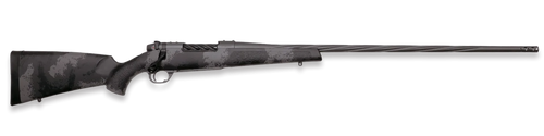 The Weatherby Mark V Live Wild is a 25-06 Remington bolt-action rifle featuring a 24" spiral fluted and threaded barrel with 1:10" twist rate, designed in partnership with hunter Remi Warren. This rifle combines the historic Mark V action with modern features including a TriggerTech adjustable trigger, skeletonized bolt, carbon fiber stock with black and gray accents, and weighs 5.8 lbs. Drilled and tapped for optics with 1/2x28 thread pattern and Accubrake ST muzzle device.