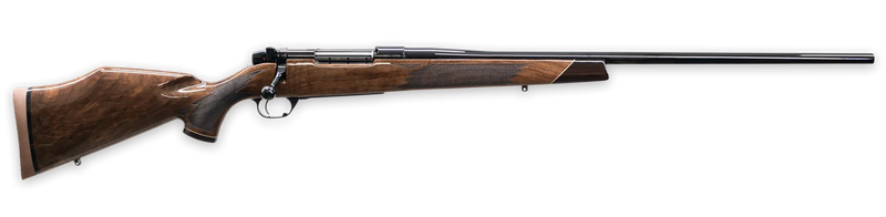 The Weatherby Mark V Deluxe is a bolt-action rifle chambered in 240 WBY Mag with a 24" high-gloss fluted barrel and 4+1 capacity. It features a gloss AA walnut fixed stock with diamond-point checkering, high-gloss blued steel drilled and tapped receiver, and a TriggerTech trigger. This rifle weighs 7.1 lbs and measures 44.63" overall, combining classic styling with modern precision engineering.