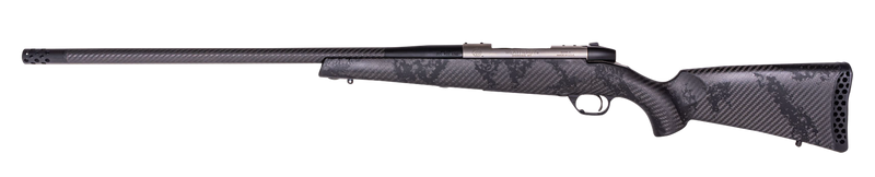Weatherby Mark V Backcountry Guide TI in 280 Ackley Improved with a 22" fluted, threaded barrel and 1:9" twist rate. This lightweight bolt-action rifle features a titanium receiver, carbon fiber stock with Peak 44 Blacktooth design, and TriggerTech trigger, weighing just 5.2 lbs. Drilled and tapped for optics with a 5/8x24 threaded muzzle and Accubrake ST muzzle brake included.