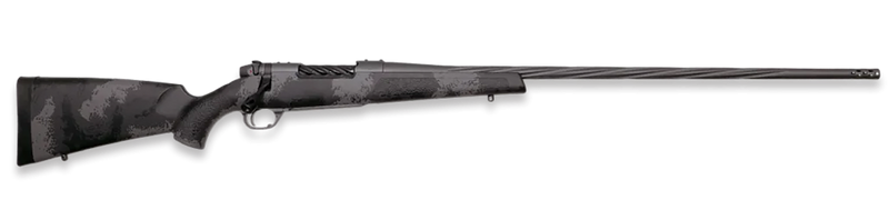 Weatherby Mark V Live Wild bolt-action rifle chambered in 243 Winchester with a 22" threaded and fluted barrel. Features a 4+1 capacity, carbon fiber stock with black and gray accents, TriggerTech trigger, Accubrake ST muzzle device, and drilled/tapped receiver. Weighs 5.7 lbs with an overall length of 43".