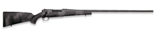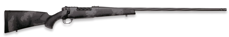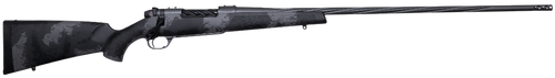 The Weatherby Mark V Live Wild is a bolt-action rifle chambered in 7mm Weatherby Magnum with a 26" fluted threaded barrel and 1:10" twist rate. It features a drilled and tapped steel receiver, fixed polymer stock with black and gray accents, and a TriggerTech trigger. This right-hand rifle weighs 6.9 lbs and has a 3+1 capacity with no sights installed.