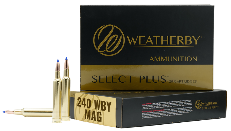 Weatherby Select Plus ammunition in 240 Weatherby Magnum caliber features an 80-grain Barnes Tipped TSX lead-free bullet with a muzzle velocity of 3440 fps and muzzle energy of 2102 ft-lbs. This hunting-grade centerfire rifle ammunition delivers the velocity and accuracy Weatherby ammunition is known for, with brass casings and 20 rounds per box.
