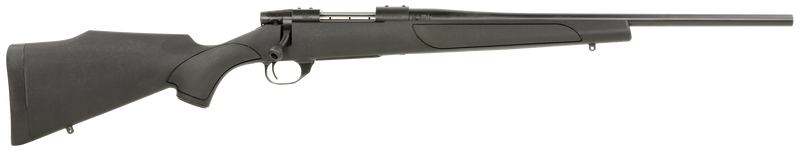 The Weatherby Vanguard Obsidian is a bolt-action rifle chambered in 350 Legend with a 20" blued barrel, 4+1 capacity, and drilled and tapped receiver for optics mounting. It features a black Monte Carlo synthetic stock, adjustable 2-stage match trigger, and 3-position safety, weighing 7.2 lbs with a 1-in-16" twist rate. Built with classic Weatherby design, this rifle combines ergonomic handling with a weather-resistant synthetic stock for reliable performance in challenging conditions.