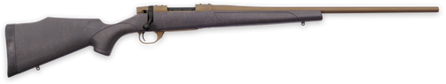 The Weatherby Vanguard Weatherguard is a 6.5 PRC bolt-action rifle featuring a 24" threaded barrel with burnt bronze cerakote finish and synthetic stock with bronze webbing, weighing 7.25 lbs. It includes an adjustable two-stage match trigger, drilled and tapped receiver for optics mounting, and Weatherby's SUB-MOA accuracy guarantee. The rifle combines quality construction with an entry-level price point, making it suitable for hunters seeking reliability and aesthetics.