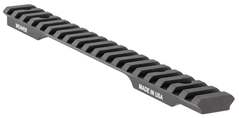 This 1-piece extended multi-slot base is designed for Savage 110 Long Action rifles and features an additional 1 inch of forward length for expanded mounting options. Constructed from 6061-T6 aluminum with a matte Type III hard coat anodized finish, it is compatible with both Picatinny and Weaver style rings. The base comes with 0 MOA cant and is manufactured in the USA.