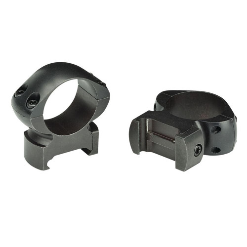 These 2-piece steel scope rings feature Weaver's positive dovetail locking system with rear mount windage adjustment for precise sighting. Constructed from solid steel with a matte finish, they provide maximum strength and recoil resistance. The cross-lock design and four-hole Torx screw construction deliver secure scope lock-down.