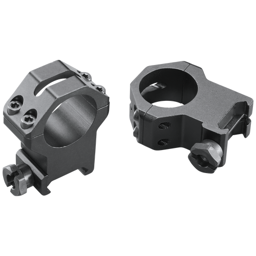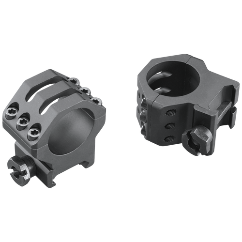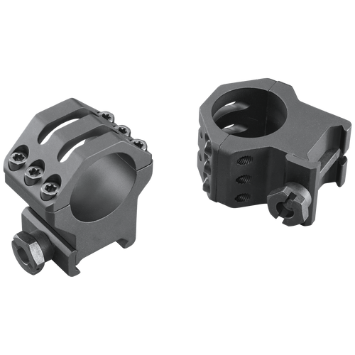 These Weaver tactical scope rings feature a 1" tube diameter with XX-high height and matte black finish. Constructed from aircraft-grade 6061 T6 aluminum, the rings provide six points of contact for maximum security and are designed for use with Picatinny/Weaver-style mounts. The rings are engineered to maintain zero in demanding tactical environments and training situations.