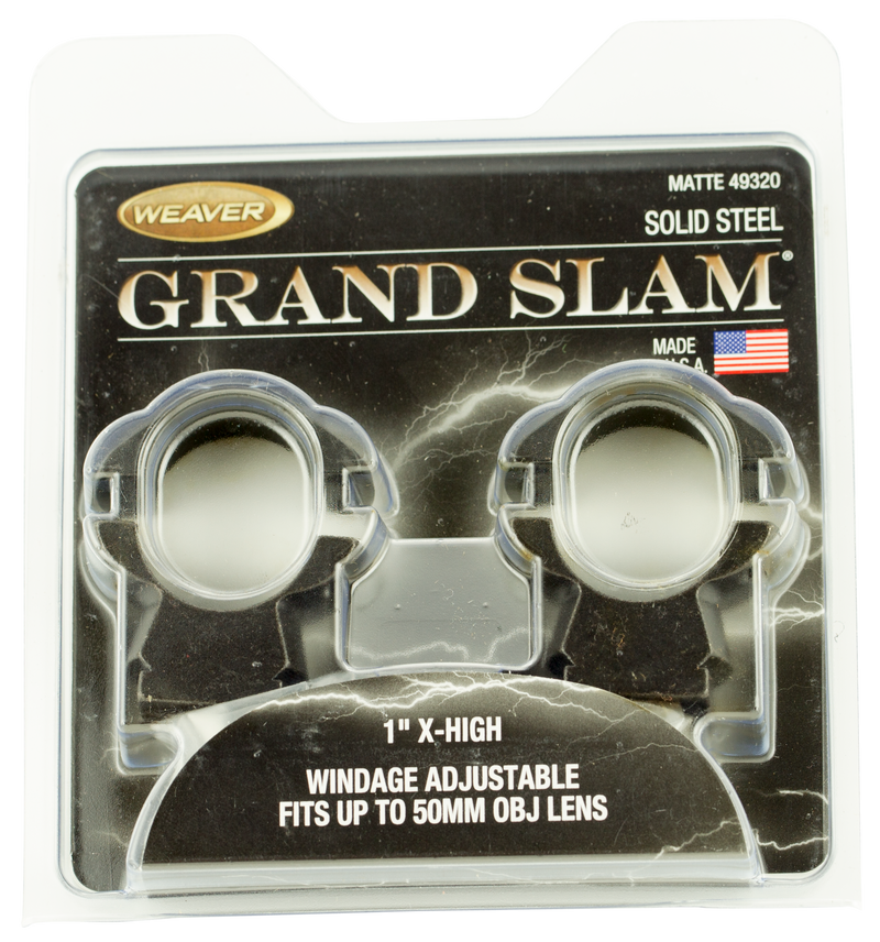 Weaver Grand Slam Windage Adjustable Scope Rings, 1" Extra High Matte Black - 49320