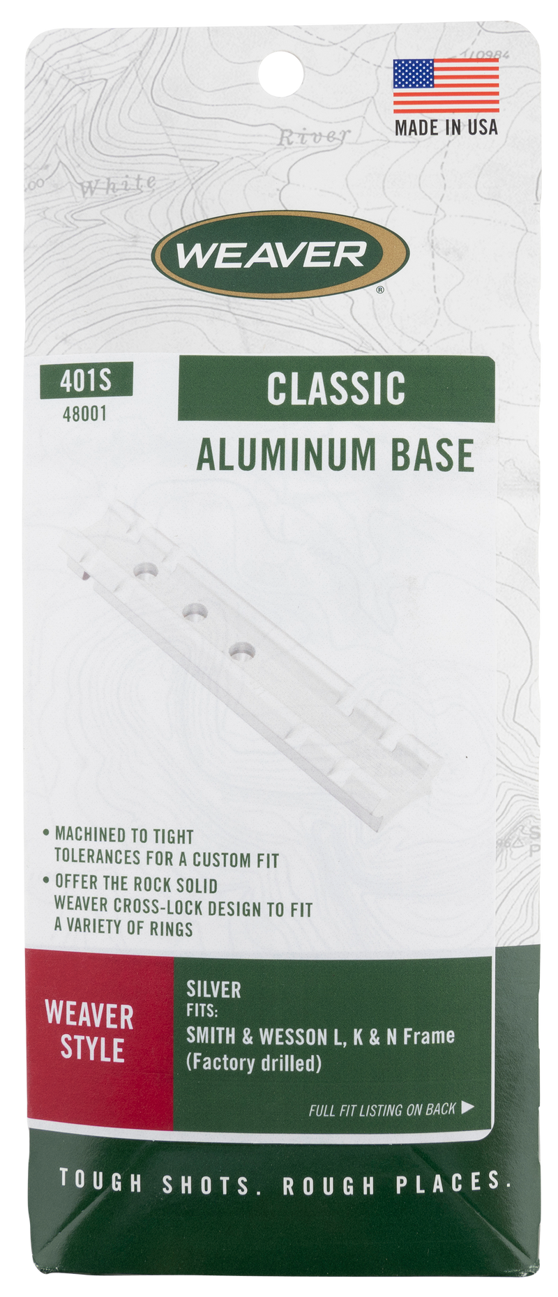 This is a 1-piece aluminum scope base designed for Smith & Wesson K, L, and N frame revolvers with a silver finish. The base is machined to tight tolerances for a custom fit and provides maximum strength for rings to hold securely.