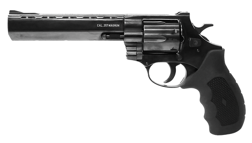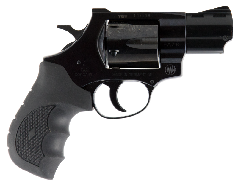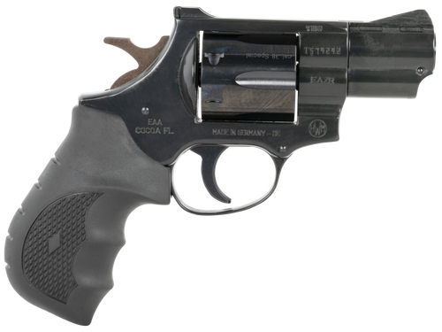 The Weihrauch Windicator is a compact 357 Magnum revolver with a 2" blued steel barrel and cylinder, chambered for both 357 Mag and 38 Special. It features a double/single action trigger, exposed hammer, fixed rear and ramp front sights, and black synthetic grips. This 6-round revolver weighs 30.4 oz and is designed for personal protection and sport shooting.