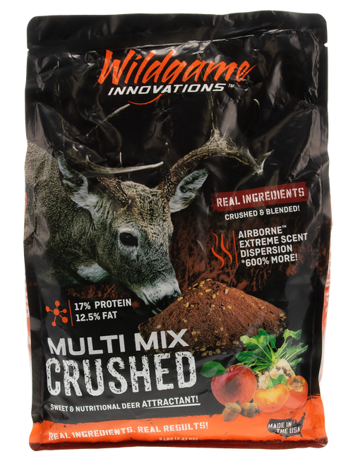 Crushed sugarbeet attractant designed to draw game to feeding areas. This 5lb bag is part of a 3-bag case pack for bulk purchasing. Formulated as a scent-based supplement for wildlife feeding and baiting applications.